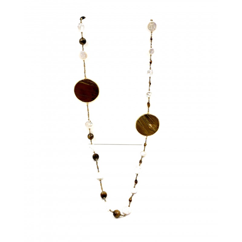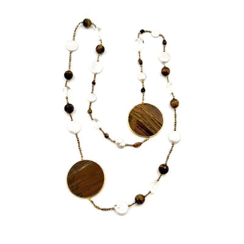 Composé de superbes pierres de Oeil de Tigre, Perles et Cristal de Roche.