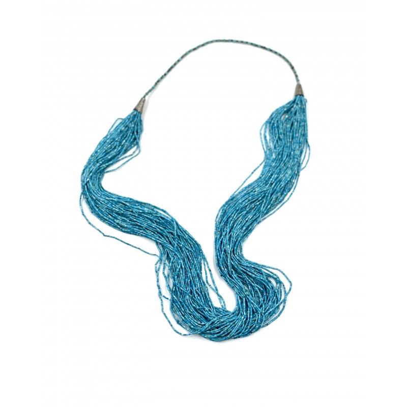 Plusieurs fils turquoise cubiques forment ce magnifique collier