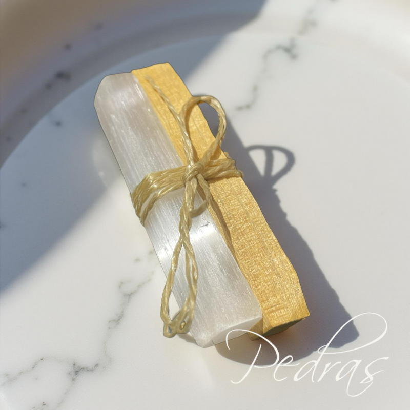 Kit duo nettoyage énergétique pour votre Maison avec de la sélénite et du Palo Santo
