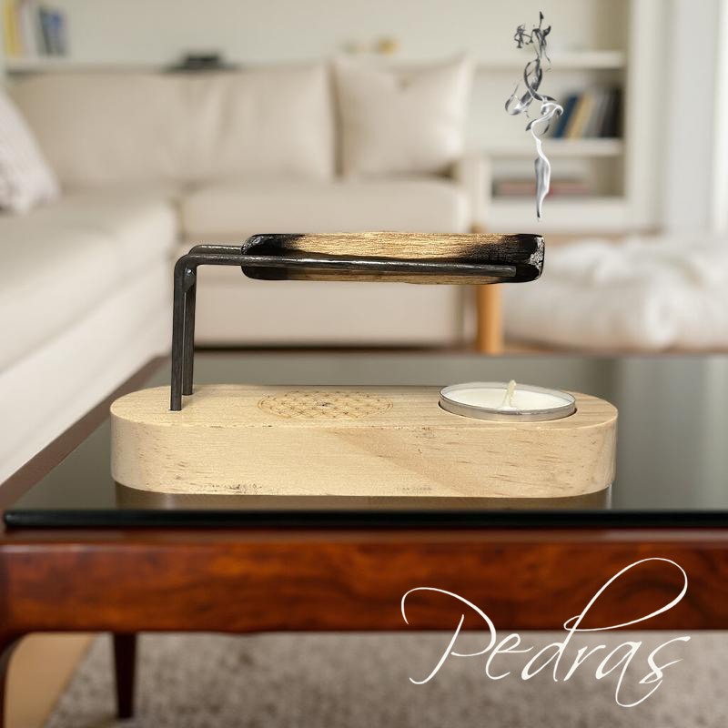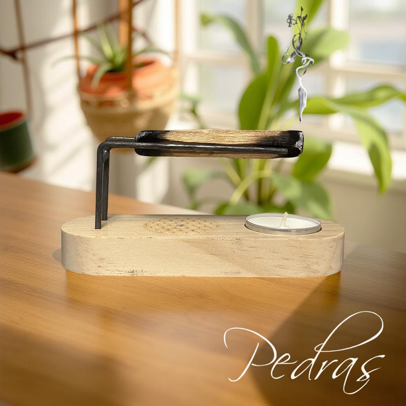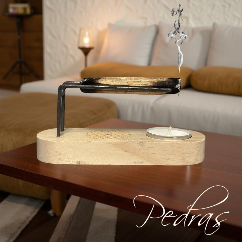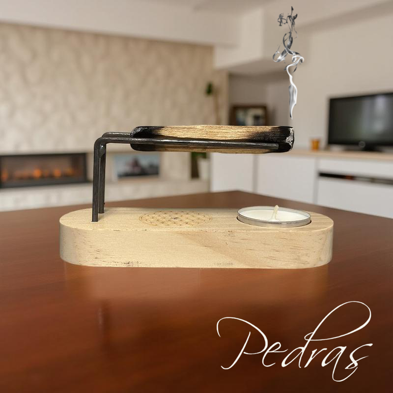 Brûleur en pin, orné d'une élégante fleur de vie, spécialement conçu pour accompagner vos moments de purification et de méditation avec le Palo Santo. Fabriqué à partir de bois de pin, ce brûleur allie esthétique et fonctionnalité.