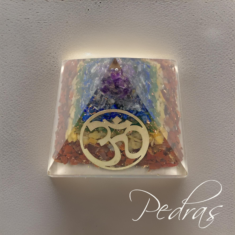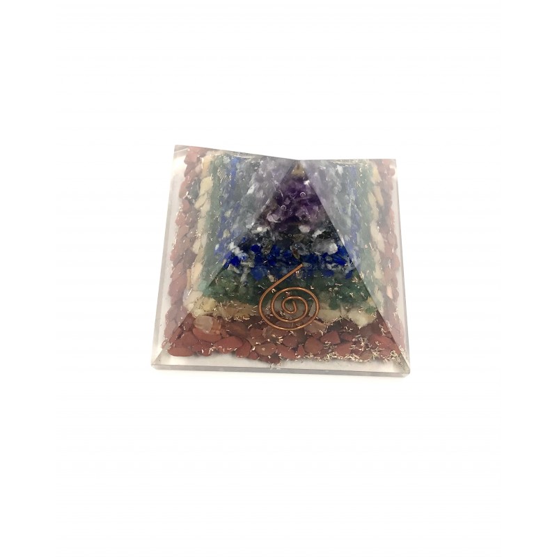 Pyramide composé par des pierres naturelles, résine et cuivre
