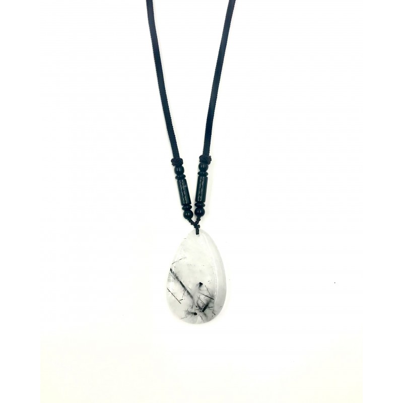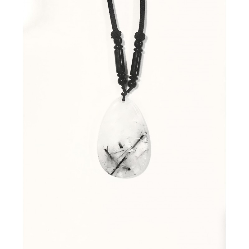 Pendentif Quartz Tourmaline - pierre plate
