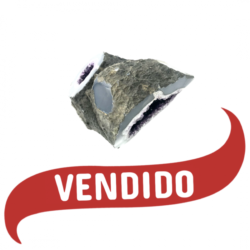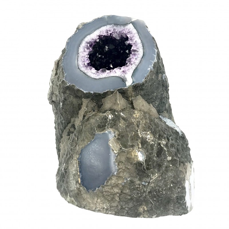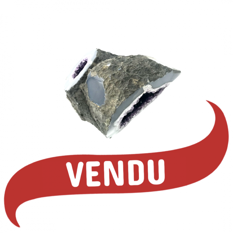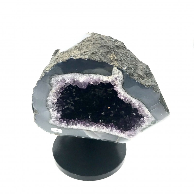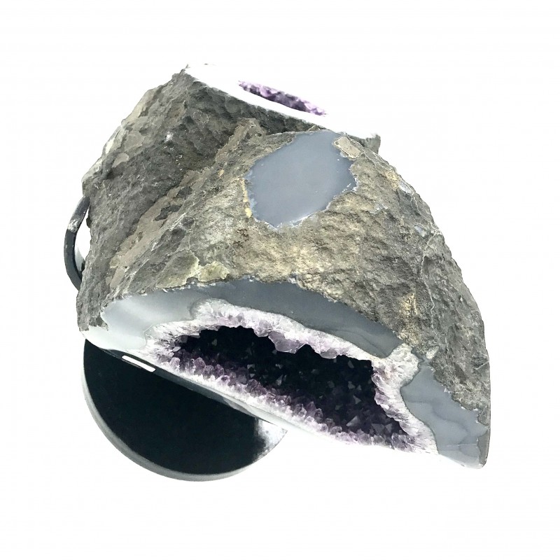 Superbe Améthyste du Uruguay avec 2 ouvertures avec un socle en ferre noire.