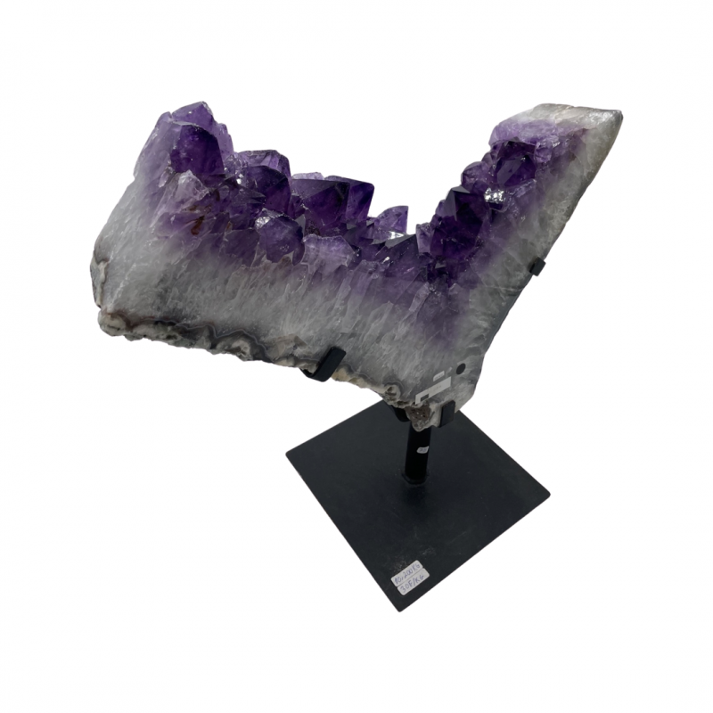 Belle géode de Améthyste "V" du Uruguay, base em metal.