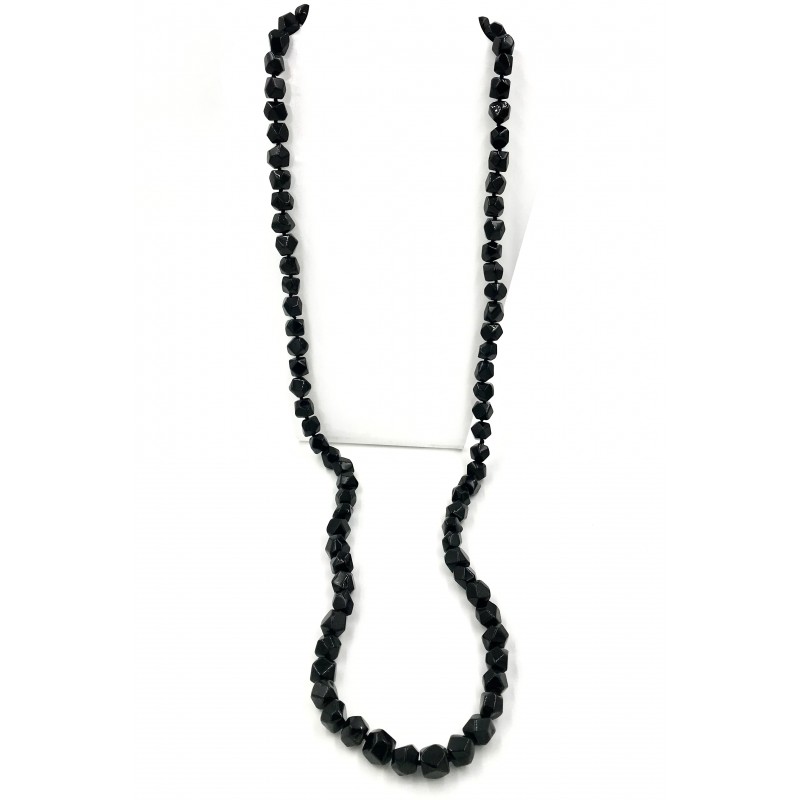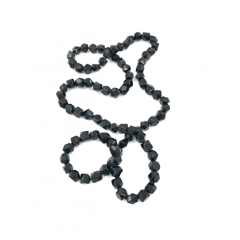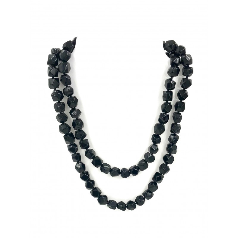 Composto por magníficas pedras pretas de obsidiana, este colar com pedras em formas irregulares de aproximadamente 14mm leva você a uma viagem pelo esplendor das pérolas negras. Este colar está disponível em um colar longo.