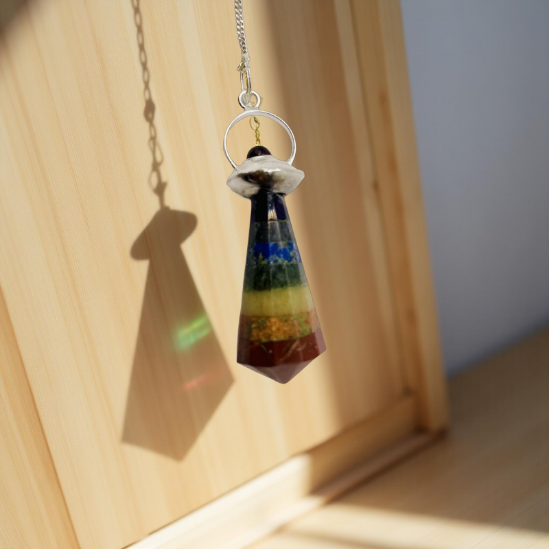 O pêndulo, na sua função espiritual, também é um excelente instrumento para limpar e energizar os chakras, promovendo seu equilíbrio. Seu trabalho é nivelar os chakras e estabilizar nossa saúde global, que pode ser afetada por sobrecarga de energias negativas.