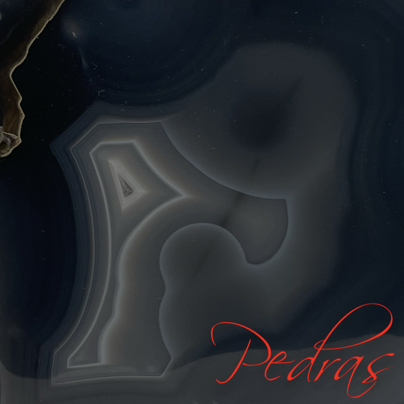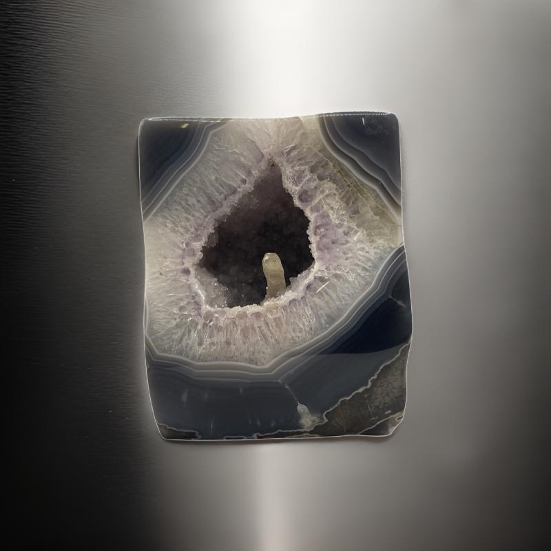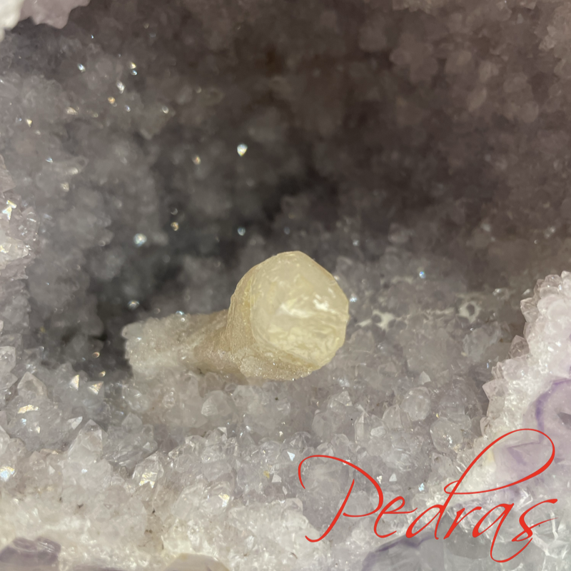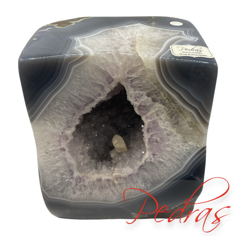 Ágata quadrada com terminação em ametista, cristalização de uma bela calcita e sua tipografia "A"