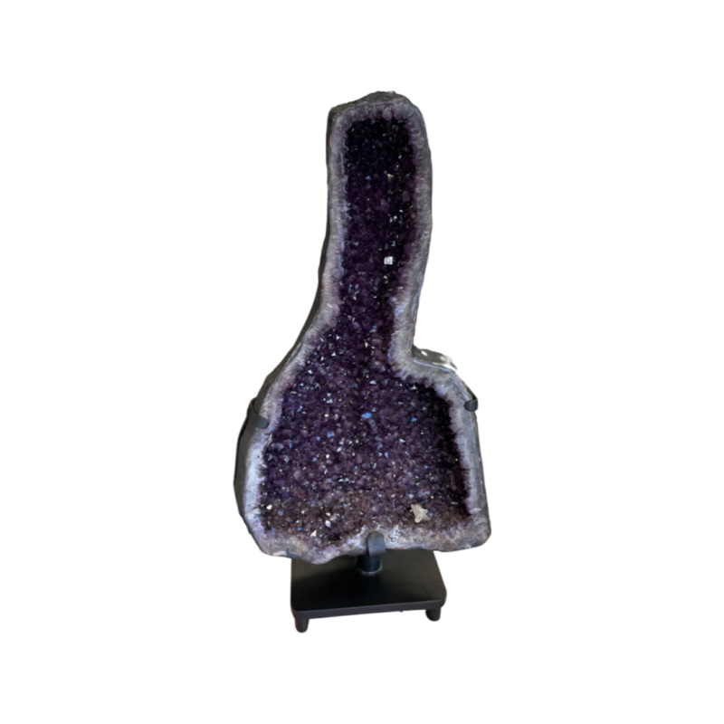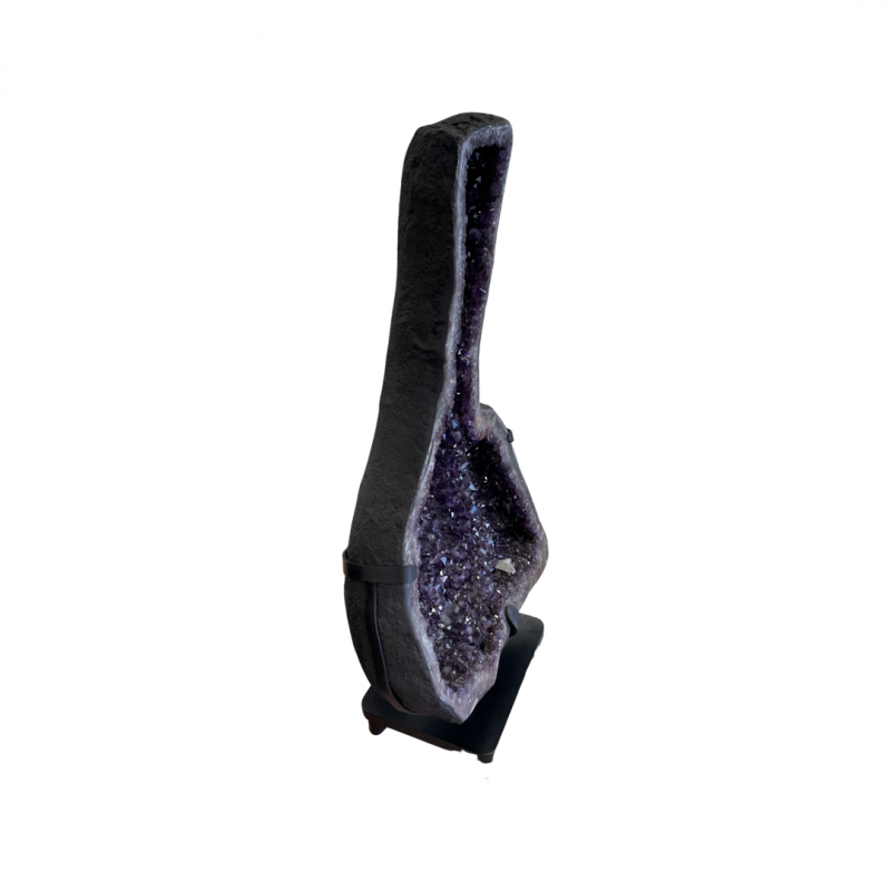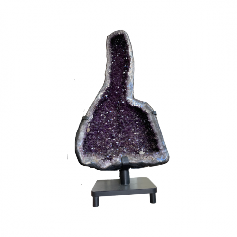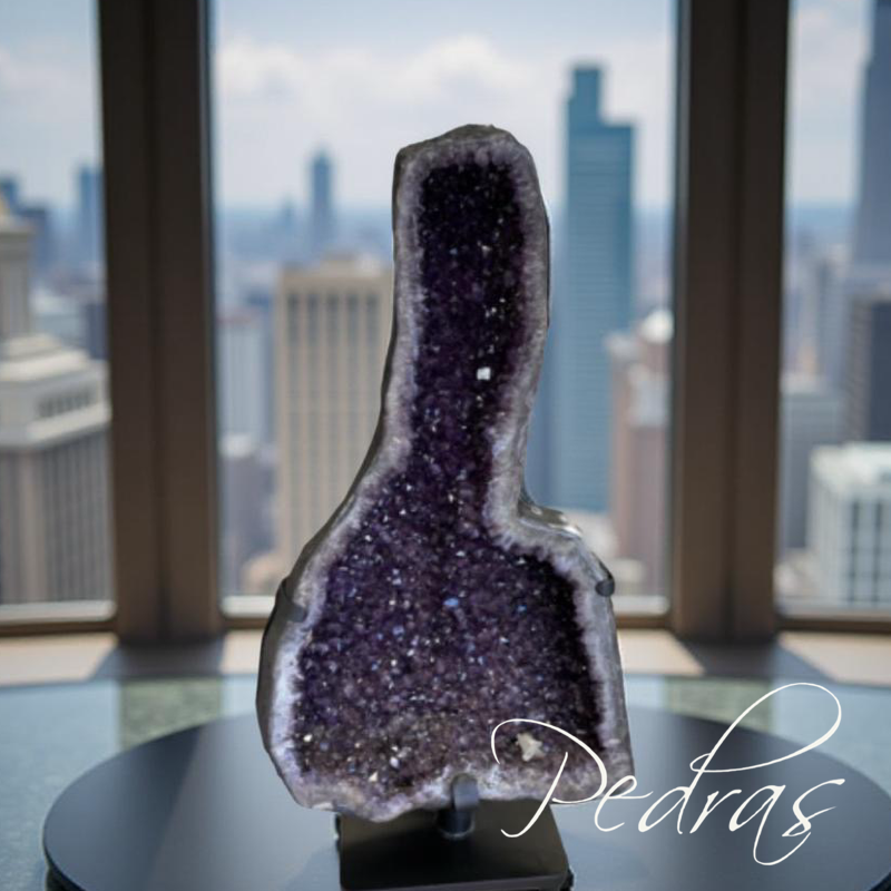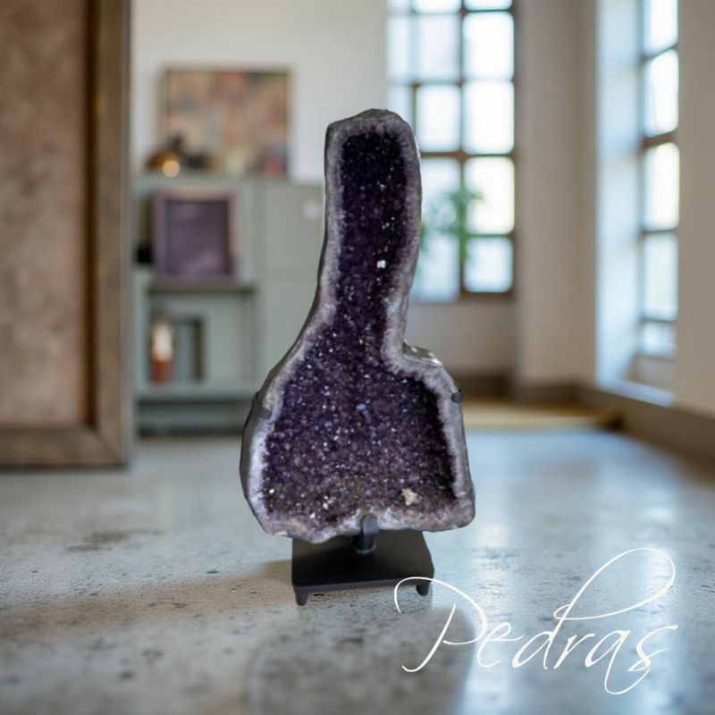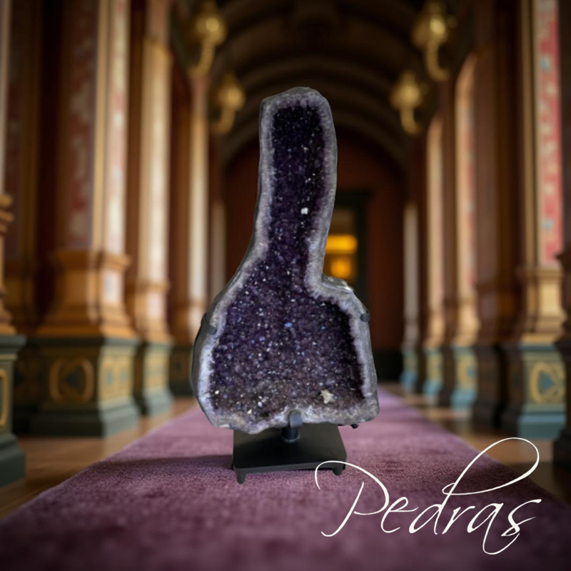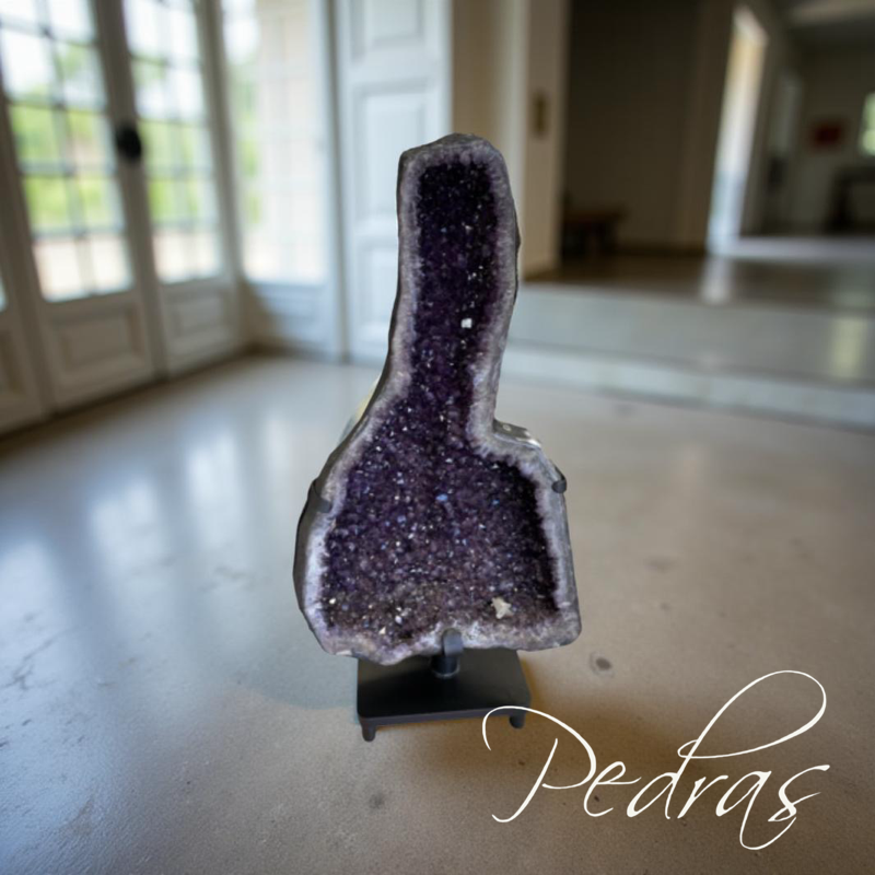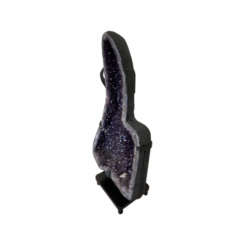 Belo Géodo de Ametista do Uruguay "IL VIOLINO" com base em metal.