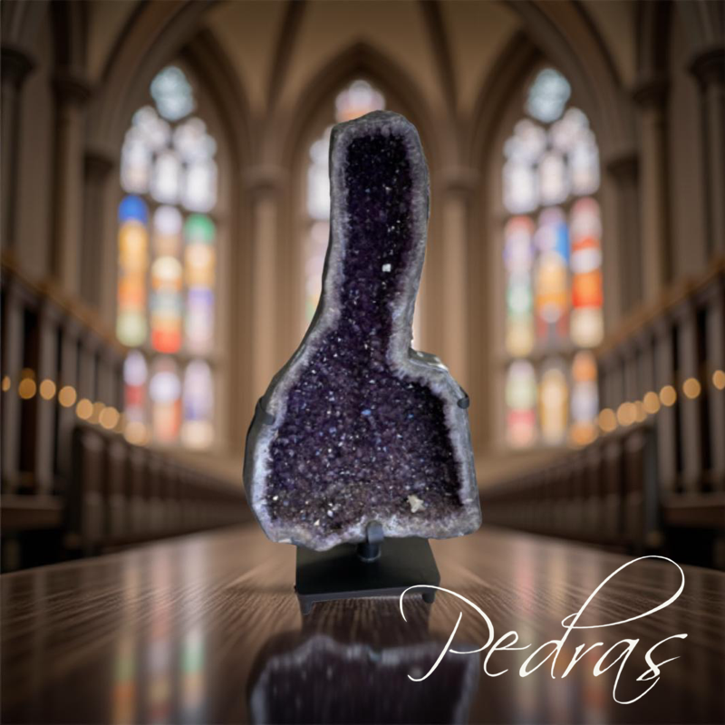 Cristalização singular de ametista em formato de violino, ideal para agregar sofisticação à sua casa ou escritório. Com uma formação cristalina excepcional, esta peça confere um toque de requinte e se destaca em qualquer ambiente.