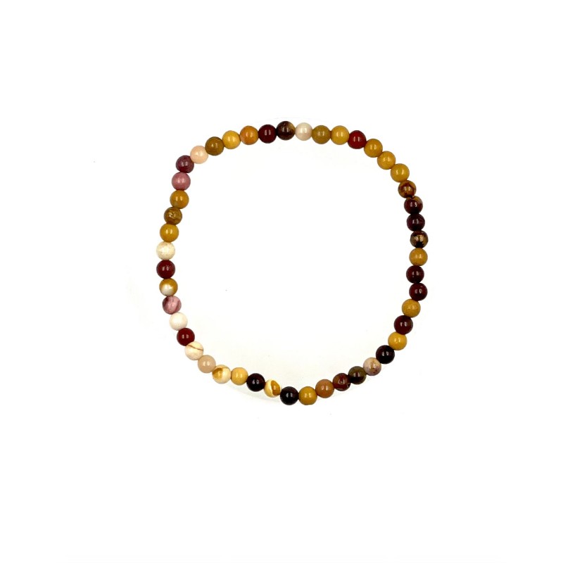 Em um nível emocional. O Jaspe Mookaïte é encontrado em leitos de riachos. Como tal, ele contém inerentemente a vibração de acesso sob a superfície aquosa de suas emoções para acessar as questões básicas que causam turbulência emocional. Esta pedra vem em uma variedade de combinações de cores. Nesta pedra, especificamente, o amarelo está associado ao chakra do plexo solar e ao seu foco na auto-estima, na autoconfiança e na coragem de ser tudo o que você pode ser.