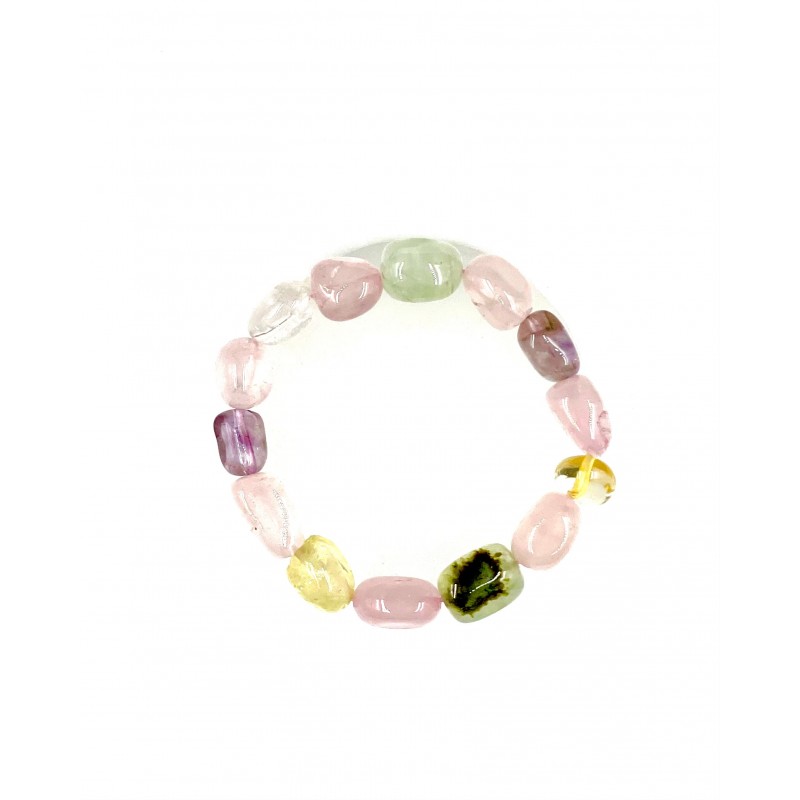 Esta pulseira elástica é feita de diferentes pedras naturais.